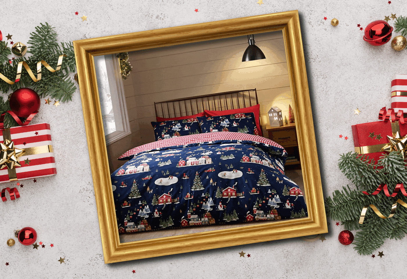 Shop Christmas Duvet Sets, Cushions, Table Linens & Kitchen Textiles — all in one festive collection.