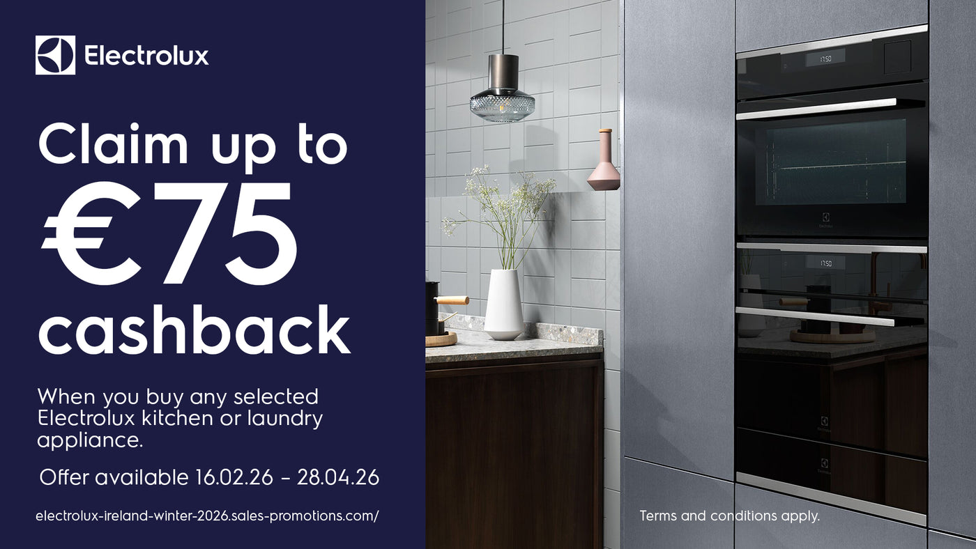Purchase selected Electrolux products between 16th February and 28th April 2026 and claim up to €75 cashback until 28th July 2026.