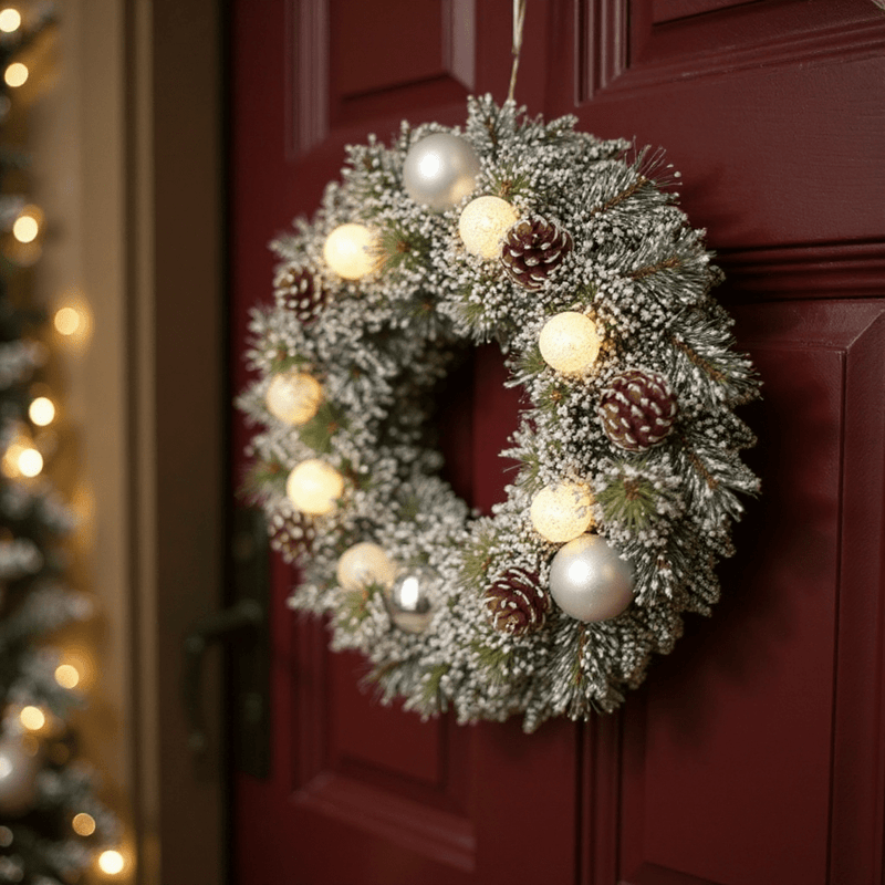 Classic, frosted or lit—our wreaths are reusable, affordable, and perfect for doors.