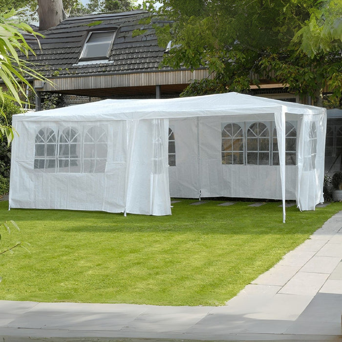 Spacious 6x3m marquee with elegant white finish—ideal for birthdays, BBQs, and garden gatherings.