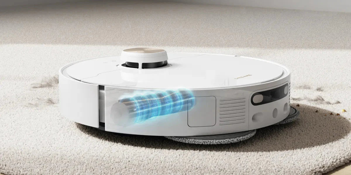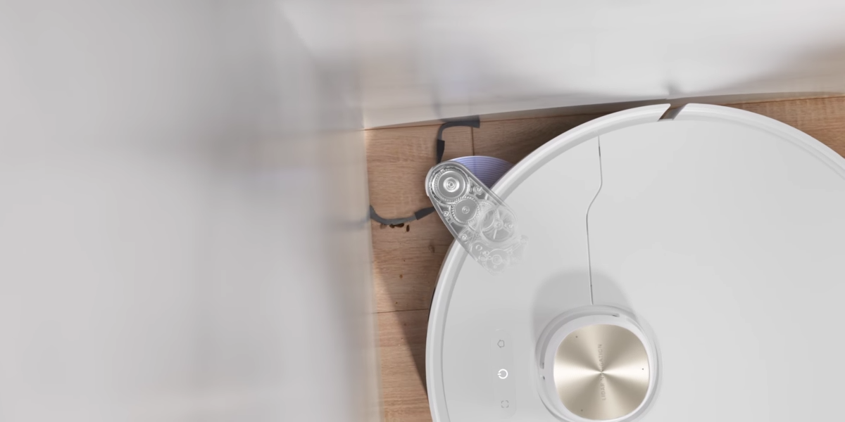L40 Ultra's side brush rises over 0.39in (10mm), working with the mop and main brush to separate wet and dry cleaning tasks. The robot vacuum smoothly switches between carpets and floors, preventing mess crossover while sweeping and mopping.