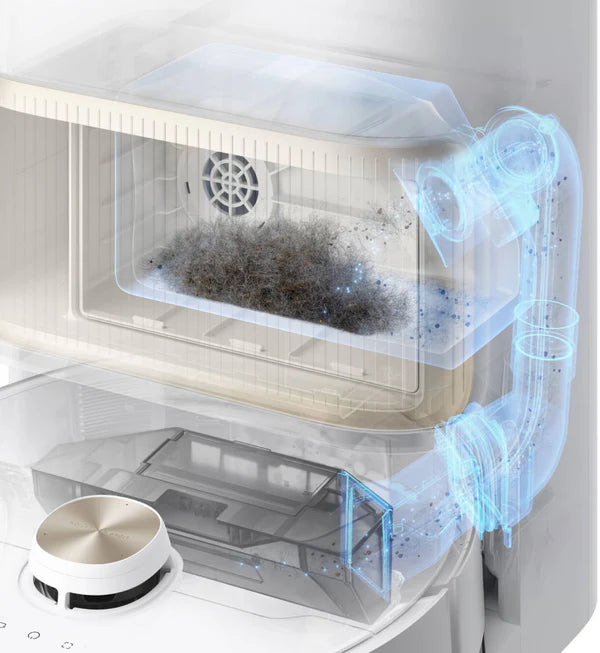 Experience full self-maintenance with L40 Ultra. It auto-empties dirt for up to 75 days, dries mops with hot air, refills water and solution, and cleans the mop and washboard with (149℉) 65°C hot water.