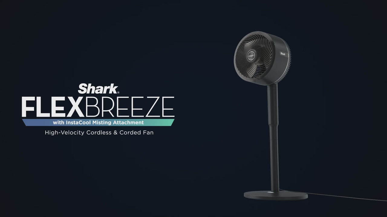 • Shark FlexBreeze Hybrid Indoor & Outdoor Fan with cover, pedestal stand, remote controller & InstaCool Misting Attachment