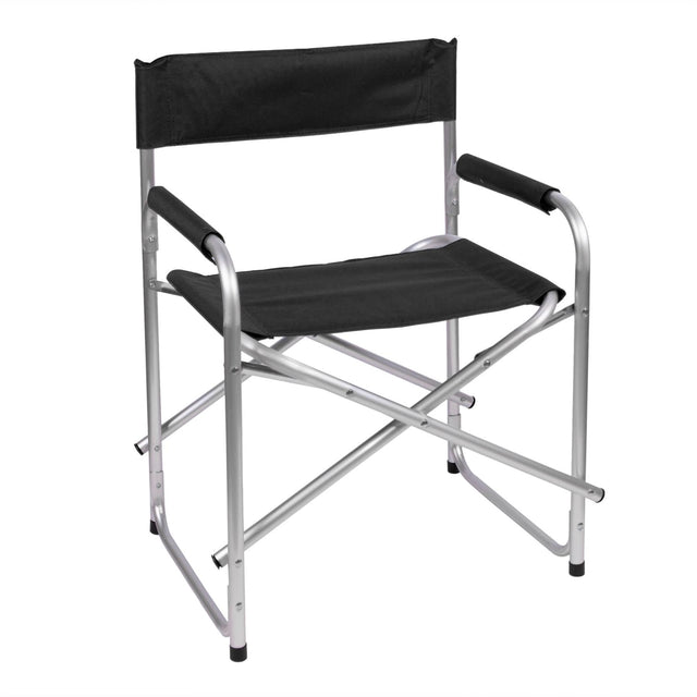 This director’s style chair is ideal for camping, caravanning, garden & outdoor use. It is manufactured with a lightweight folding aluminium frame plus Oxford fabric seat material & padded arms to ensure a more comfortable experience.
