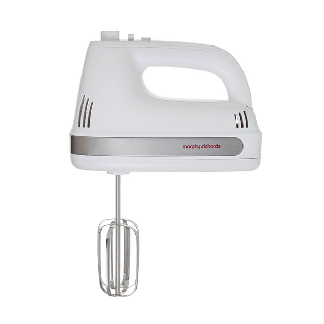 The Morphy Richards Hand Mixer is a sleek, simple yet effective hand mixer to suit your needs. This hand mixer presents a body with stainless steel beaters, trim detail and a convenient turbo function with five adjustable speeds. Compact and durable, this model offers three dedicated speeds for folding, mixing and whisking. It also has a moulded handle for a comfortable grip.