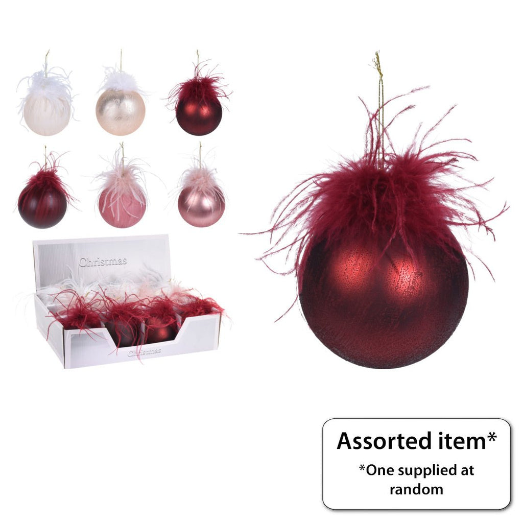 Bauble with Feathers 100mm is backordered and will ship as soon as it is back in stock.