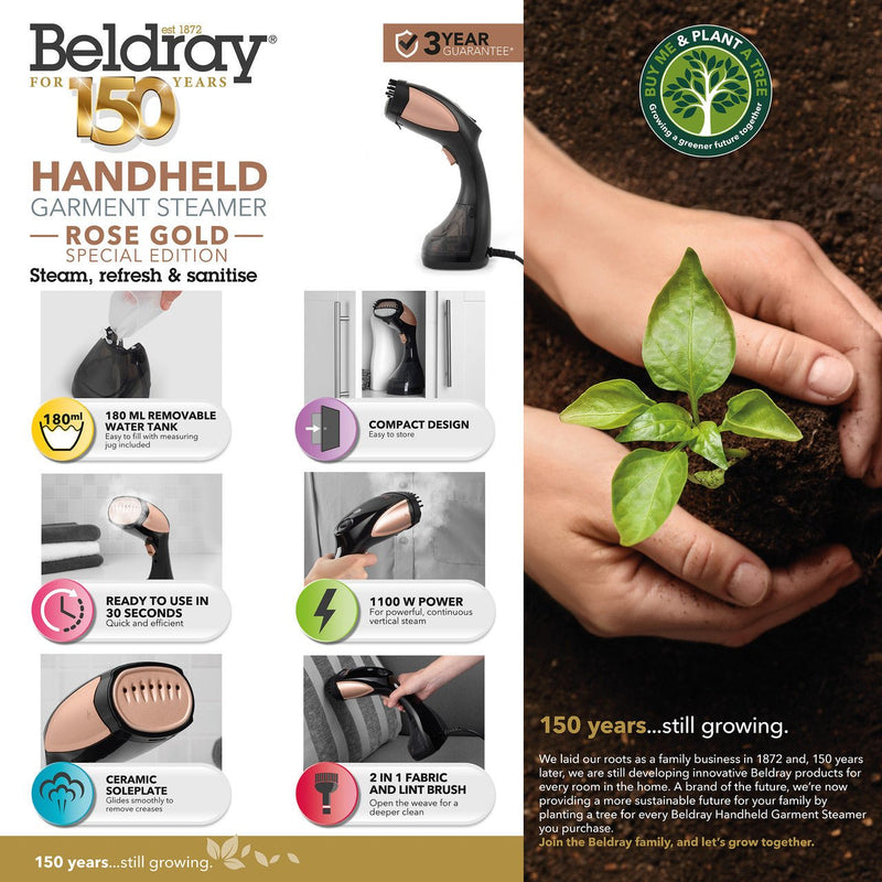 - 150 years and still growing - Beldray are planting a tree for every Garment Steamer purchased, providing a more sustainable future.