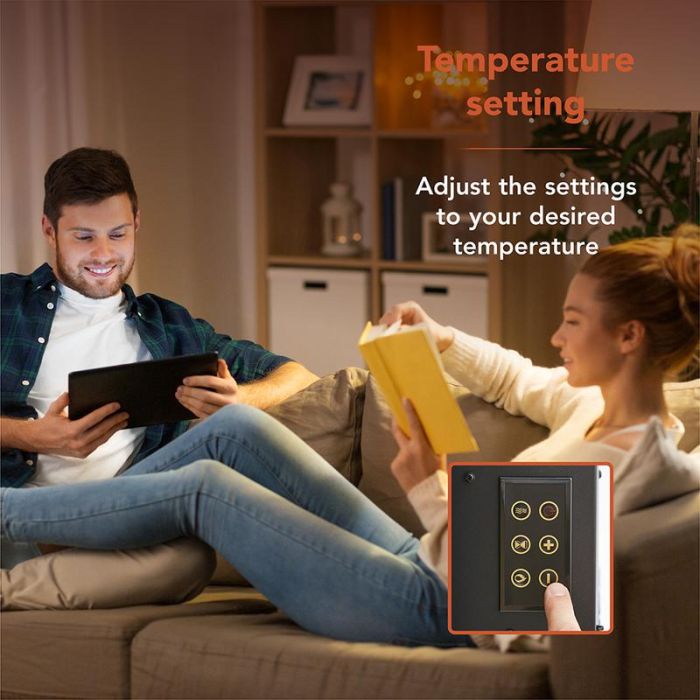 The Warmlite Dundee 22 Inch Curved Glass Wall Mounted Fireplace - 2Kw is designed to keep you warm and cosy all year round. Choose from two optional heat settings of 1750W and 2000W for maximum comfort . The curved glass front panel gives you a clear view of the log burning effect and the adjustable realistic LED flame which can work independently from the heating function emits a cosy glow. Stay in control of your fireplace using the handy remote control, which you can use to set your preferred temperature and lighting. 2 year guarantee.