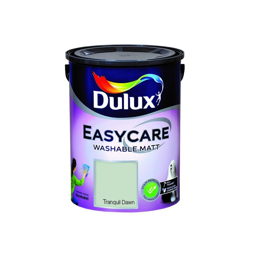 Dulux Easycare 5L Tranquil Dawn offers a washable, tough matt finish designed to protect your home from everyday wear and tear. Its advanced stain repellent technology helps resist common spills, allowing you to easily clean and remove stains without harming the paint, so your walls stay looking fresh longer. Suitable for all interior walls, this durable paint is also made using renewable materials, reducing its carbon footprint compared to traditional fossil-based paints. Enjoy a beautiful, long-lasting finish thatโs both practical and environmentally conscious.