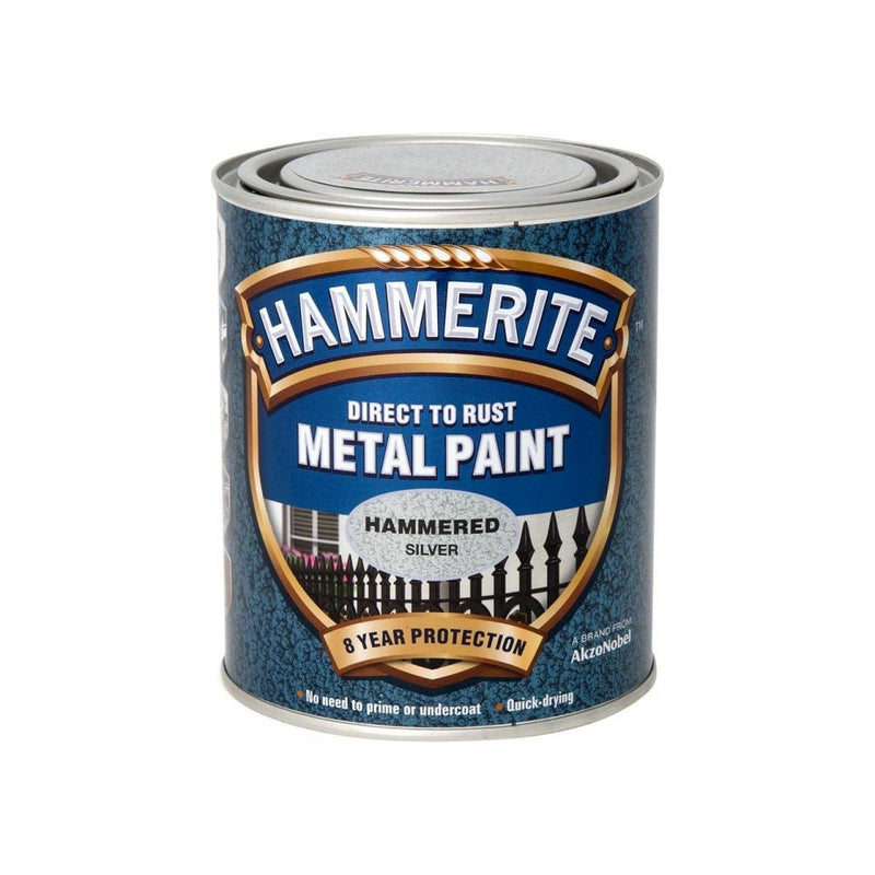 Hammerite Direct to Rust Hammered Finish Metal Paint 750ml Silver