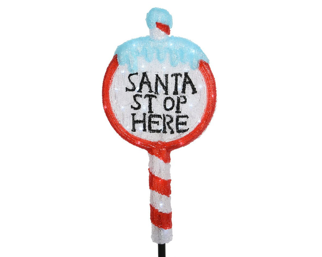 With this acrylic LED Santa stop here sign - 93cm, your home will stand out brightly and clearly to Santa. The sign can be used indoors or outdoors and has an 8 metre cable to allow you scope to position it as you choose.