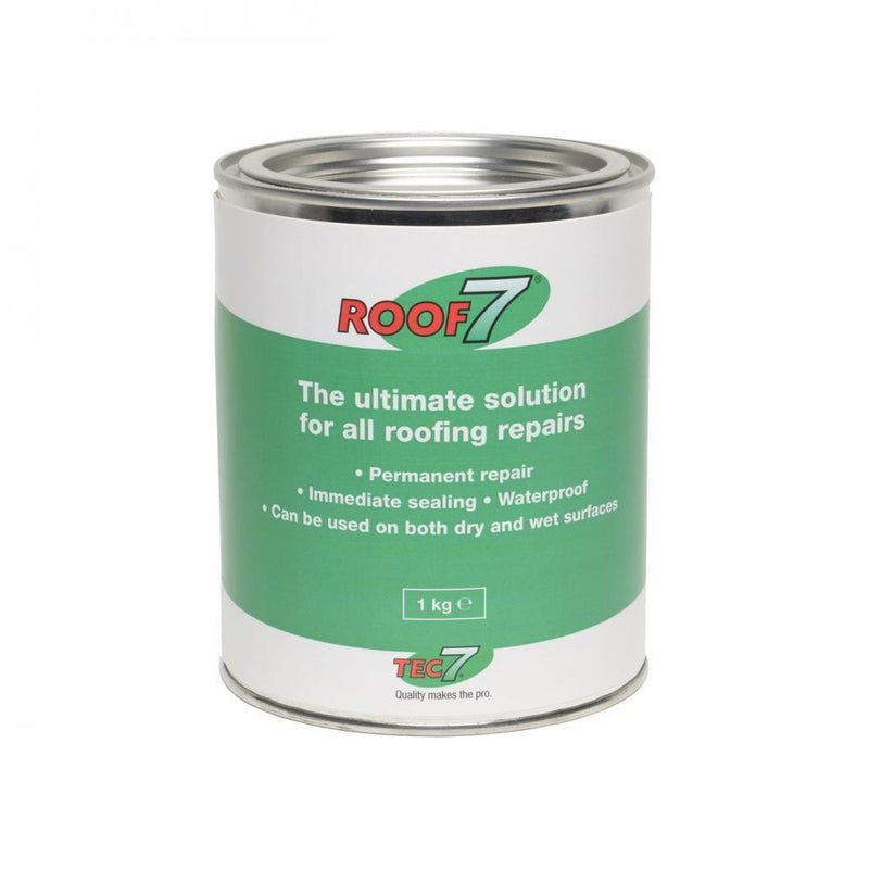 Roof 7 Roof Repair - 1kg is the ultimate solution for all roof repairs and is a must have for domestic and industrial use. Roof 7 is guaranteed to remain flexible for 20 years! Its unique formulation consists of Butyl Rubber for its long lifespan Bitumen for waterproofing and glass fibre for greater strength. Suitable for use in dry and wet conditions and on sloped or flat roofs this versatile product solves problems - particularly with Ireland's wet weather. It can be applied in temperatures ranging from -12 to +50 degrees Celsius. It can also be used with most roofing materials including: metal galvanised steel zinc lead copper tin wood insulation brick concrete roofing asphalt shingles PVC and polyester./